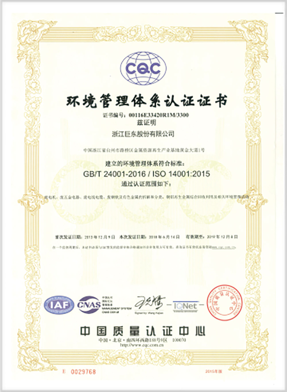 2018年6月にISO 14001認(rèn)証を取得する。