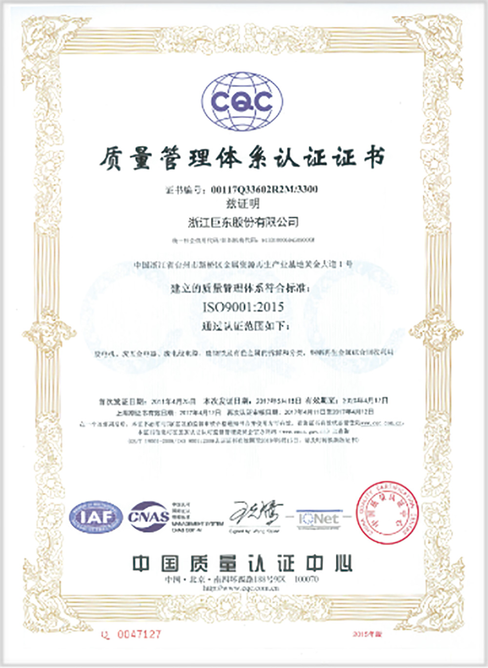 2017年5月にISO 9001認(rèn)証を取得しました。